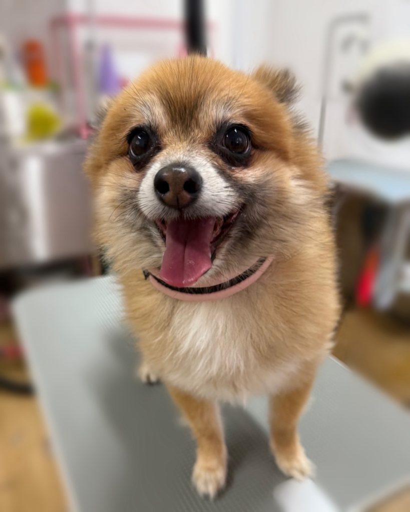 トリミング始まる前に事務所に遊びに来てくれたてるみちゃん。たくさ~んご挨拶してくれました~。お腹もたくさ~んだしてくれました。🩷🩷🩷