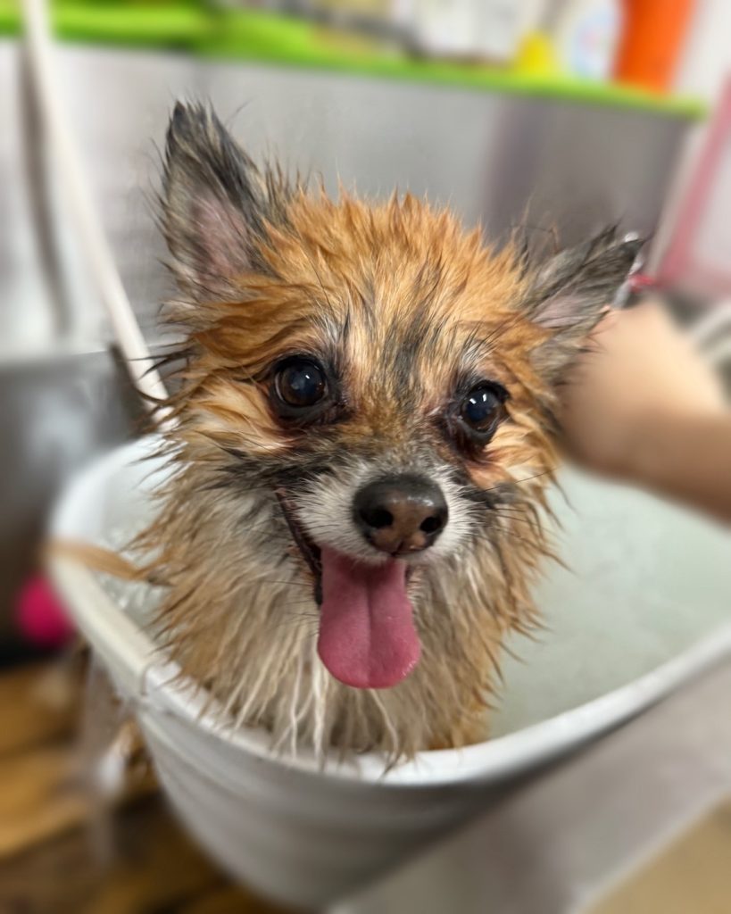 てるちゃん。マイクロバブル温浴と~っても気持ちよさそうでした~。お仕上がりもふわっふわっで~す。😆👍