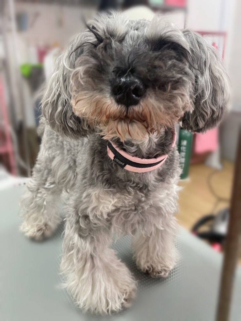 今回のオーダーは、お体2mmシュナライン、四肢ブーツ、お顔シュナカット、お耳伸びた分カットしてすそまあるく、眉短くまあるく、お口周り小さめでまあるく、しっぽまあるく、まつげ残しでした。