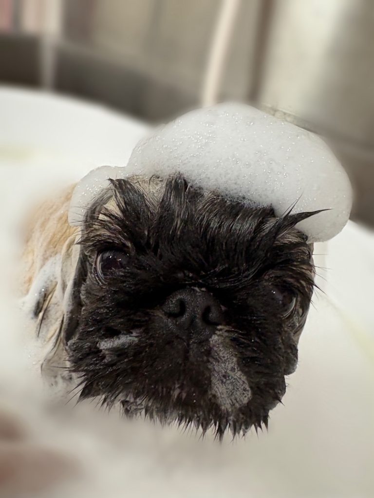 チャームポイントの黒い被毛が際立ってとてもかわいいてとちゃん。✨✨✨
