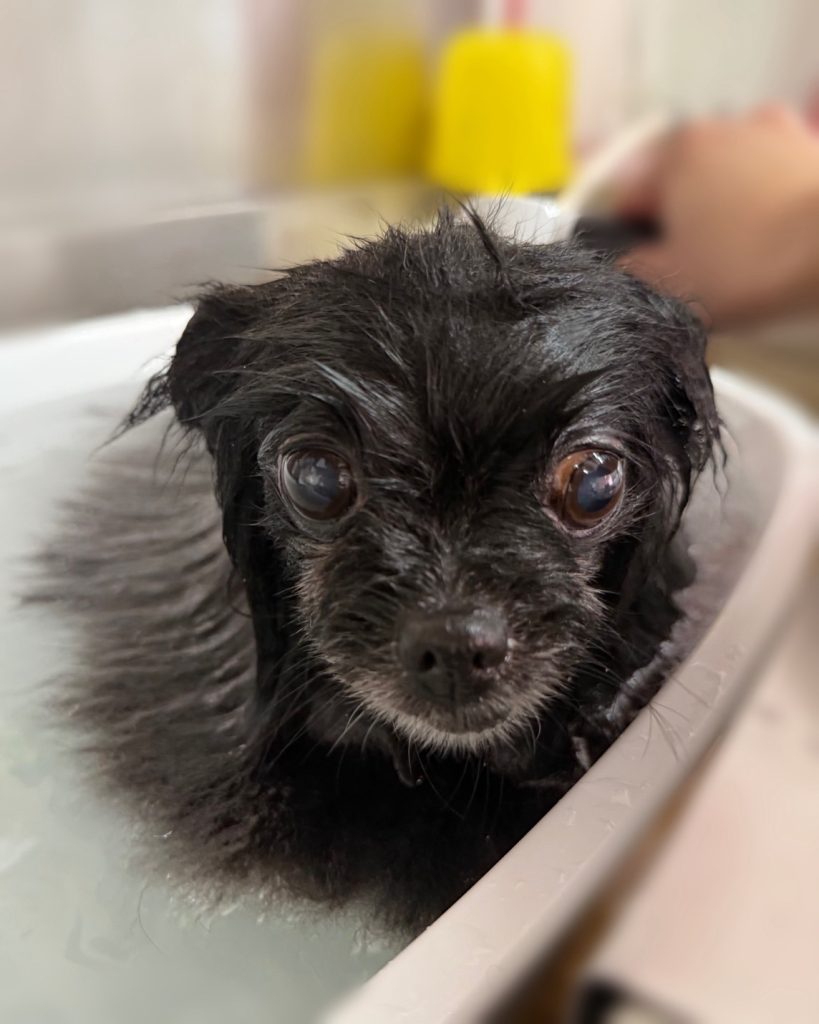 ぽっけちゃん。マイクロバブル温浴と~っても気持ちよさそうでした~。お仕上がりもふわっふわっで~す。🎵🎵🎵