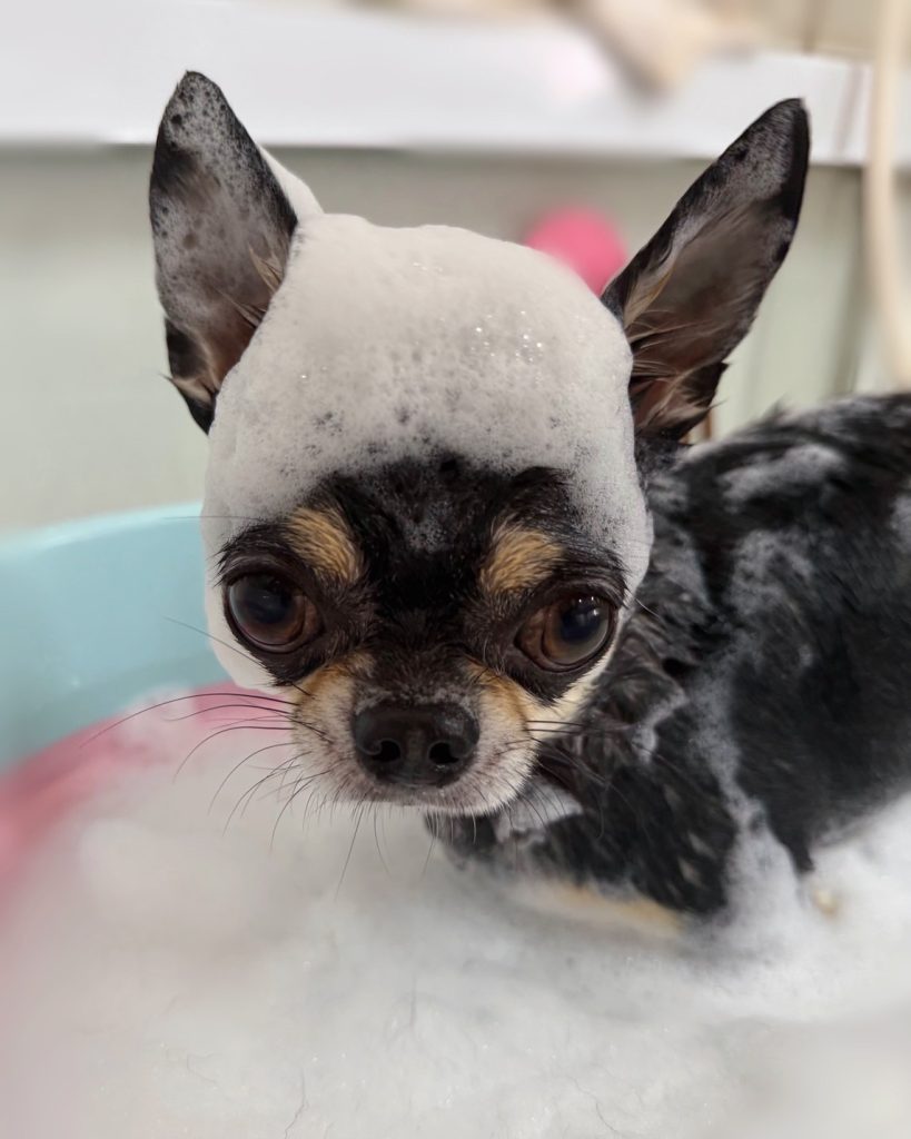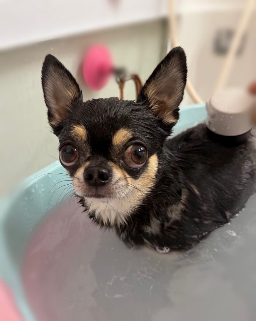 アールくん。炭酸泉温浴と~っても気持ちよさそうでした~。お仕上がりもふわっふわっで~す。😝😝😝