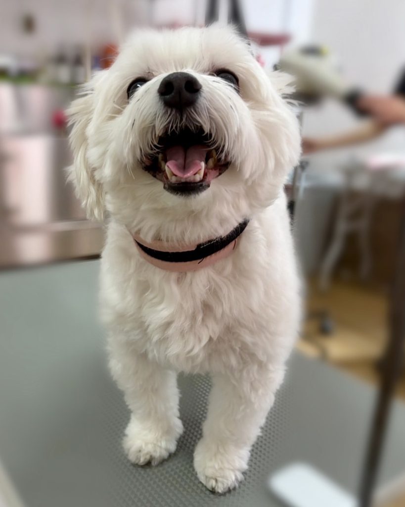 今日もすこ~し緊張気味だったモフくん。でしたが、トリミング台に乗った途端緊張が嘘のように吹き飛んでくれました~。👏👏👏