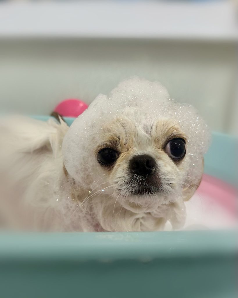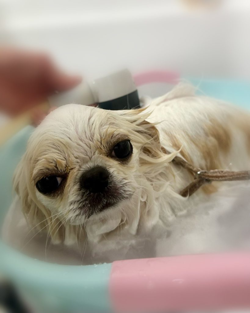 抜け毛さんにおすすめのマイクロバブルコースをお試しいただき宮ちゃん。とても気持ちよさそうに温浴してくれました~。🛀🛀🛀