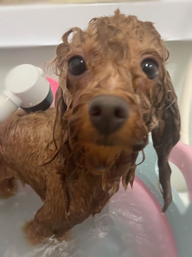 むぎちゃん。炭酸泉温浴と~っても気持ちよさそうでした~。お仕上がりもふわっふわっです。😝😝😝