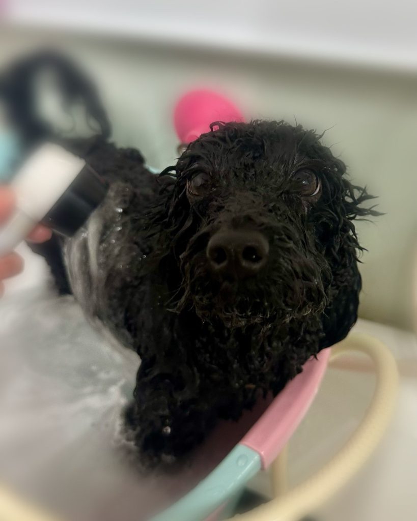 メルくん。温浴&マッサージ効果と~っても気持ちよさそうでした。お仕上がりもふわふわになりました~。😝😝😝