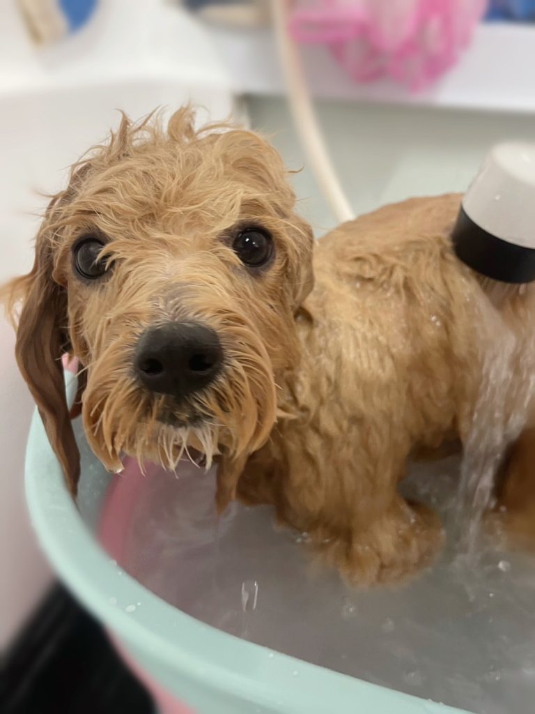 今回のオーダーは、お体16mm、四肢22mm、お顔お写真参照、お耳そろえる、足先バリカン、しっぽそろえる、高濃度炭酸泉スパコースでした。