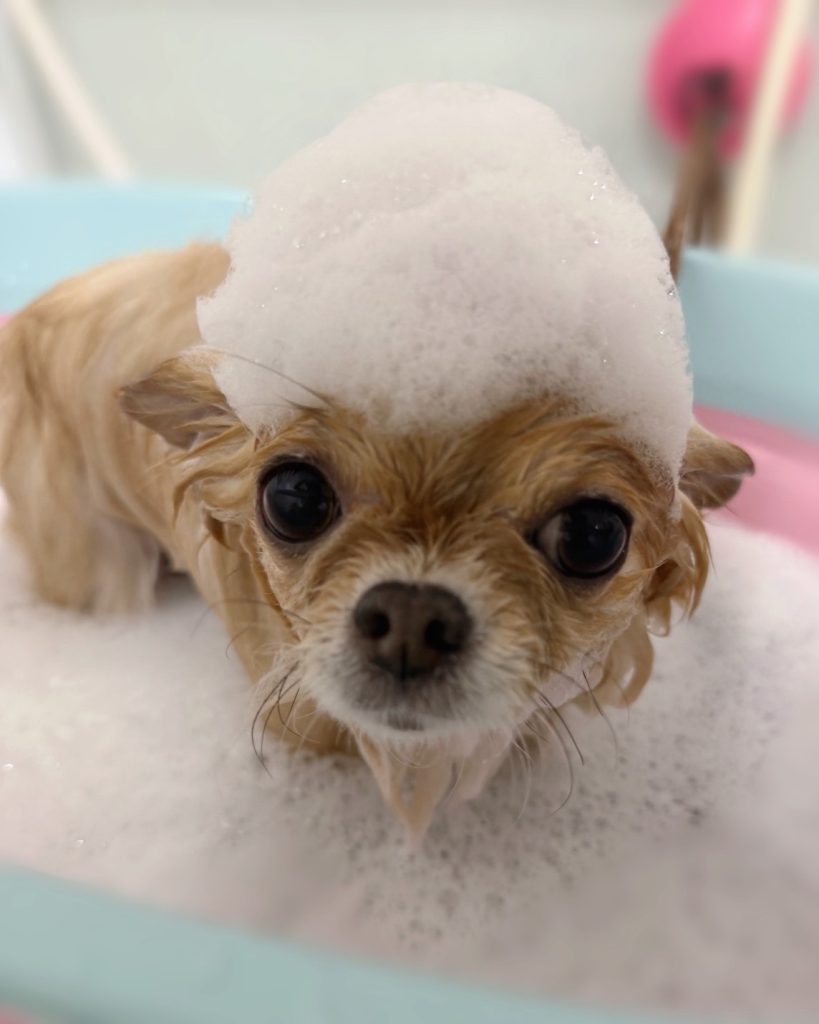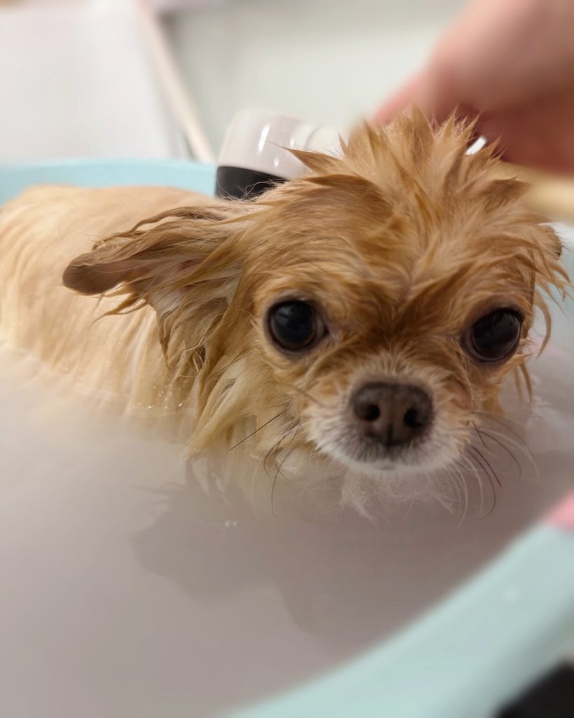 ミクちゃん。マイクロバブル温浴と~っても気持ちよさそうでした~。お仕上がりもふわっふわっで~す。🎵🎵🎵