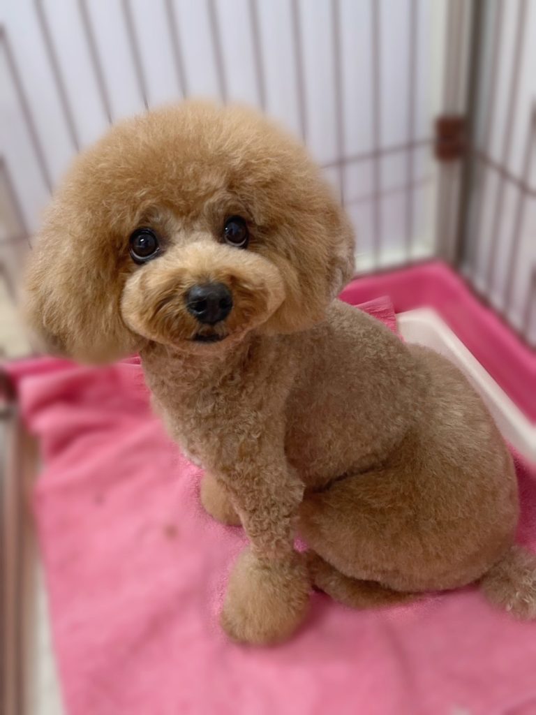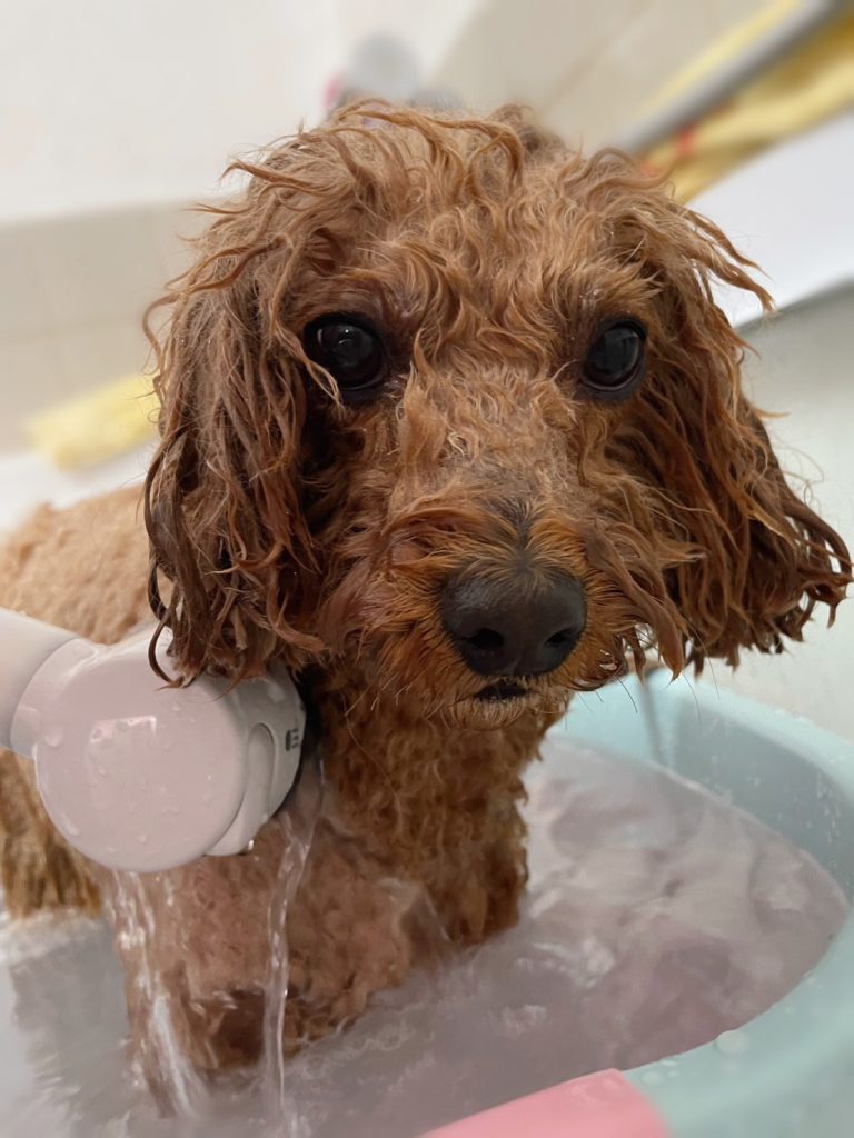 ももちゃん。炭酸泉温浴と~っても気持ちよさそうでした~。お仕上がりもふわっふわっで~す。🎵🎵🎵