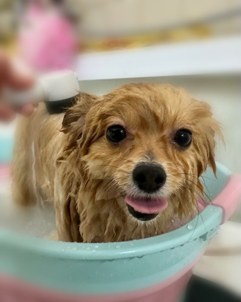 きなこくん。高濃度炭酸温浴と~っても気持ちよさそうでした~。お仕上がりもふわっふわっで~す。🎵🎵🎵