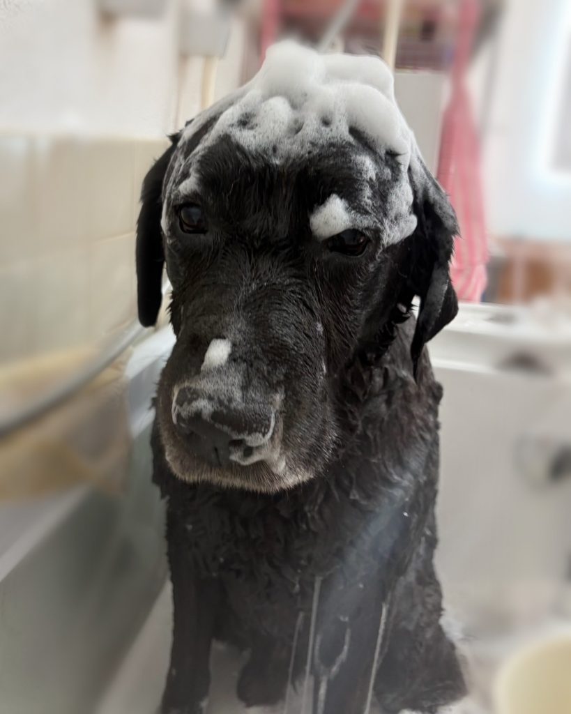 ラックくん。炭酸泉の力でたくさ~んカイカイ毛さんとれました~。お仕上がりもツルッツルッになりました~。🎵🎵🎵