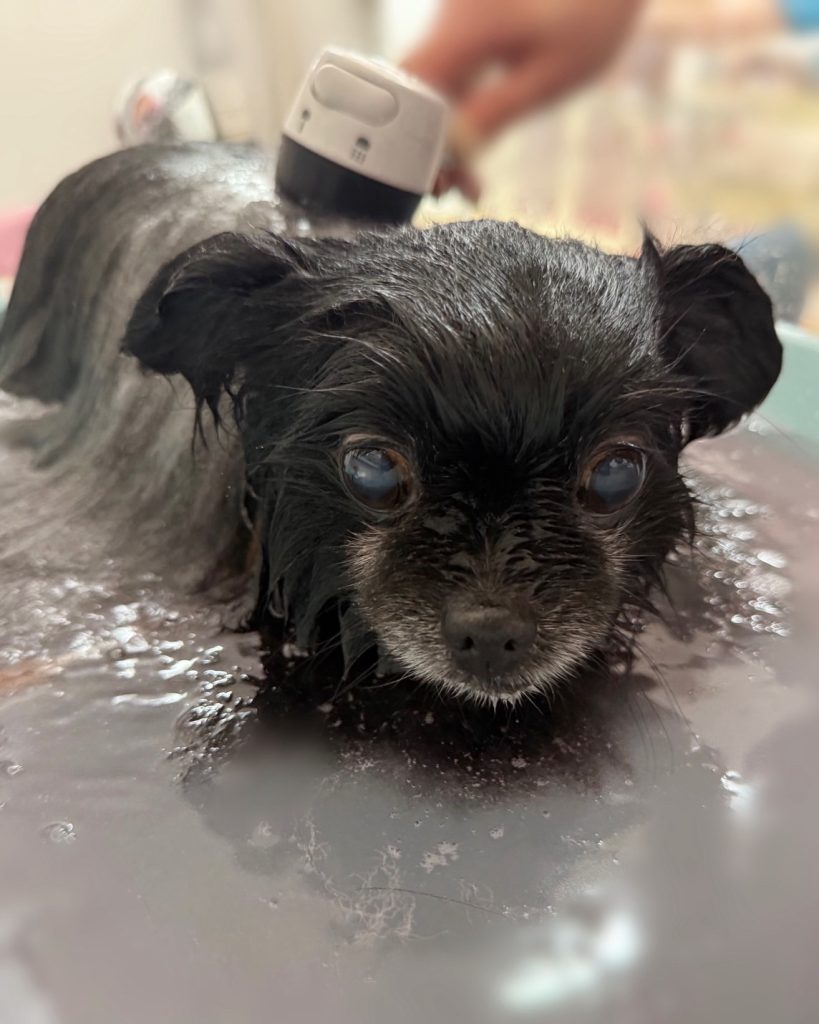 ぽっけちゃん。炭酸泉温浴と~っても気持ちよさそうでした~。お仕上がりもふわっふわっで~す。😝😝😝