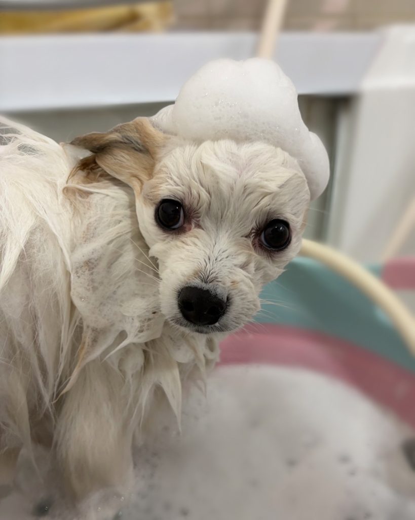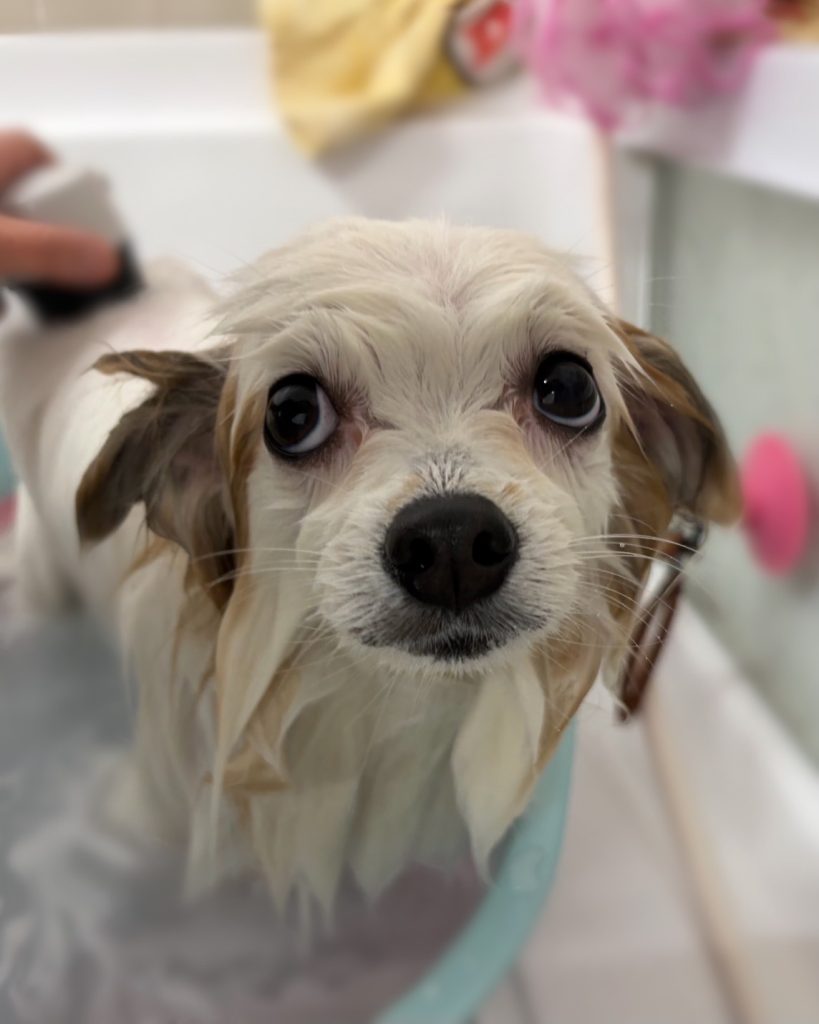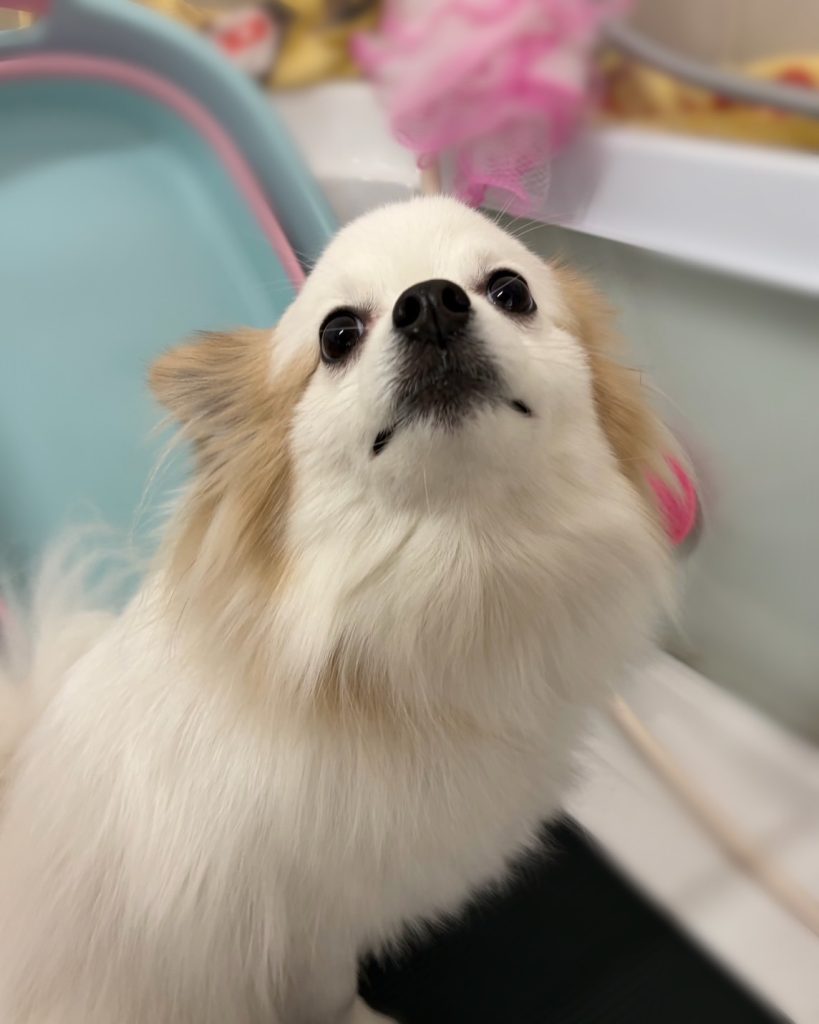 らいむくん。炭酸泉温浴と~っても気持ちよさそうでした~。お仕上がりもふわっふわっで~す。🎵🎵🎵