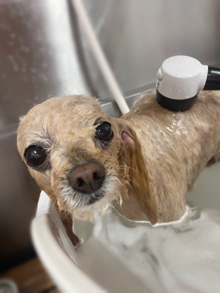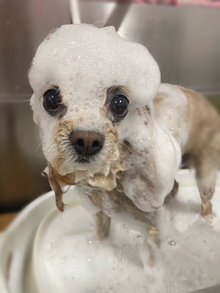 トリミングは慣れっこさんなようでトリミングを進めて行くとお切り替えがと~ってもお上手でした。👏👏👏