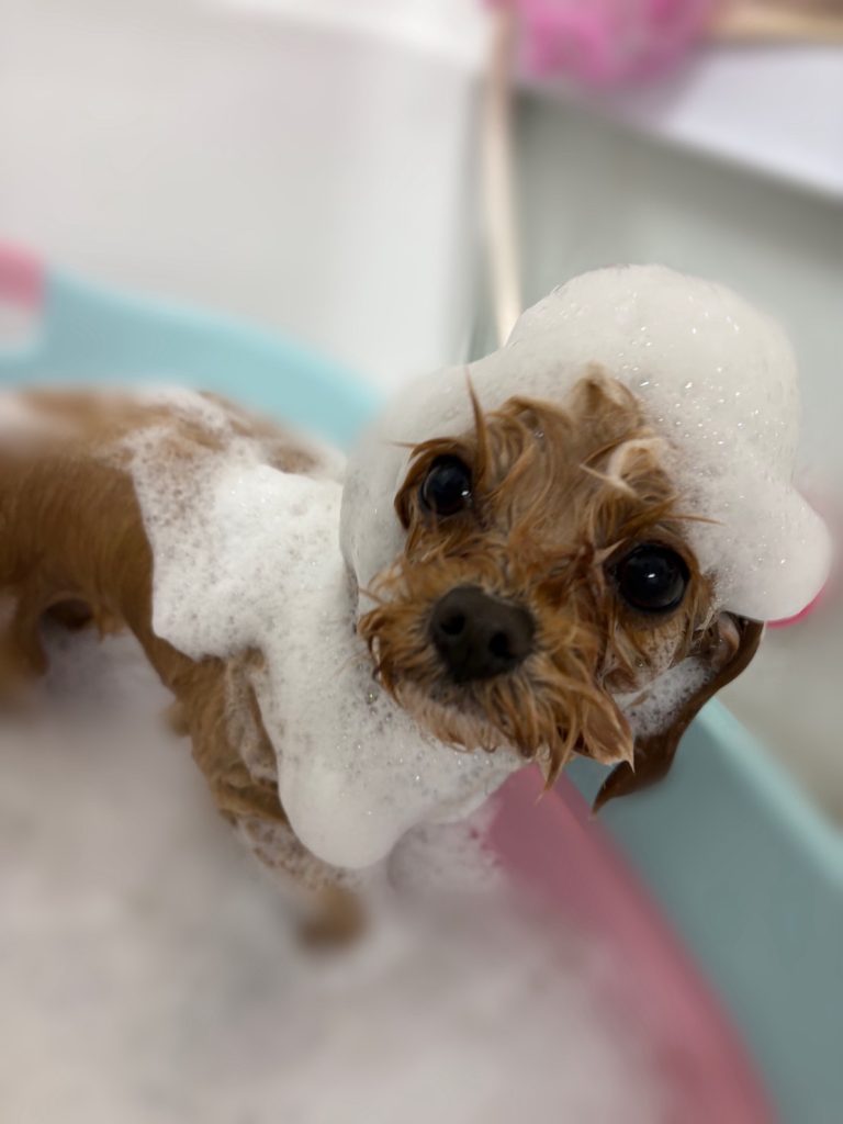 トリミングは慣れっこさんでマイクロバブルコースをお試しいただき毛穴の中から汚れをしっかり落としてふわっふわっなお仕上がりに。🛀🛀🛀