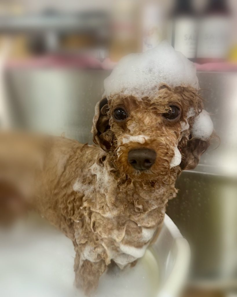 よく「どのくらいのペースでトリミングに来たらいいの?」とご質問を頂きます。適切な頻度はわんちゃんの体質や年齢によっても変わりますが、基本のペースは『1ヶ月に1回のトリミング』をおすすめしています。トリミングは「キレイに可愛くする」以外にも「定期的な健康管理と病気の早期発見」という目的もあります。 施術中は隈なく身体を触るのでおうちでは見つけていない異常を早く発見し獣医さんへの診察を促すという役目もあります。
