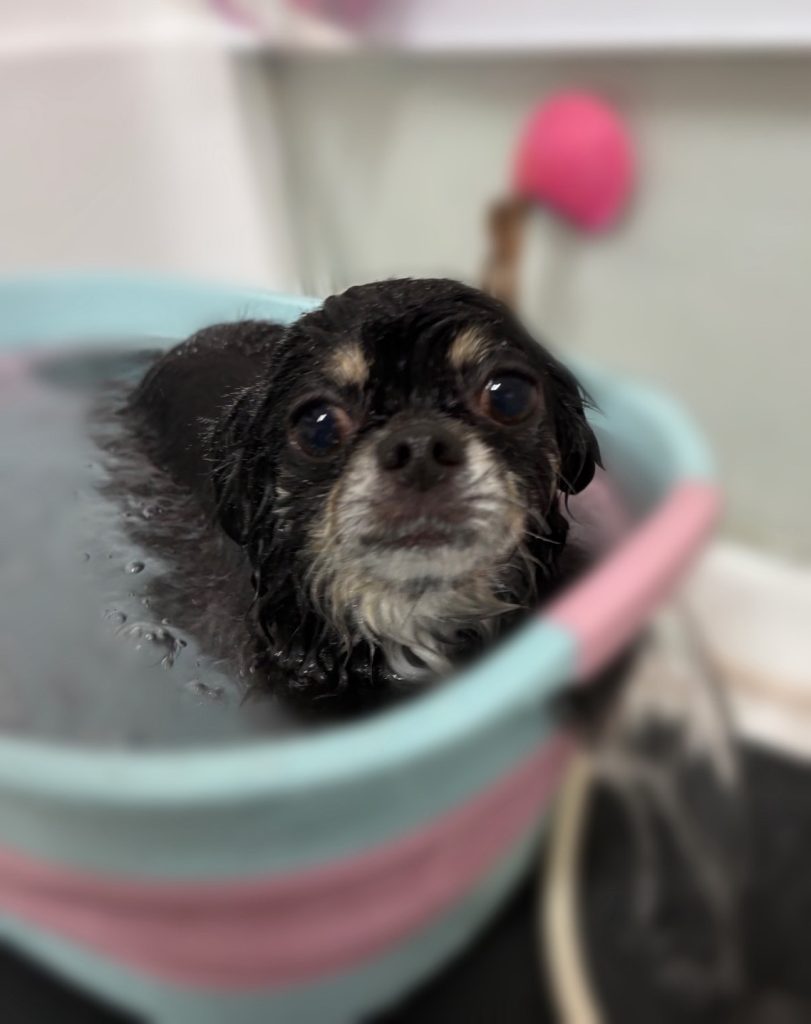 しめじくん。炭酸泉温浴と~っても気持ちよさそうでした~。お仕上がりもふわっふわっで~す。😊👍