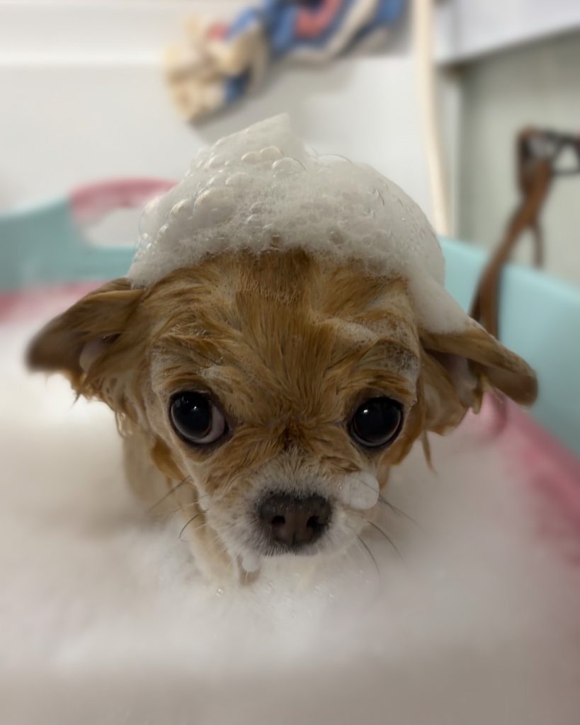ミクちゃん。マイクロバブル温浴と~っても気持ちよさそうでした~。お仕上がりもふわっふわっで~す。🎵🎵🎵