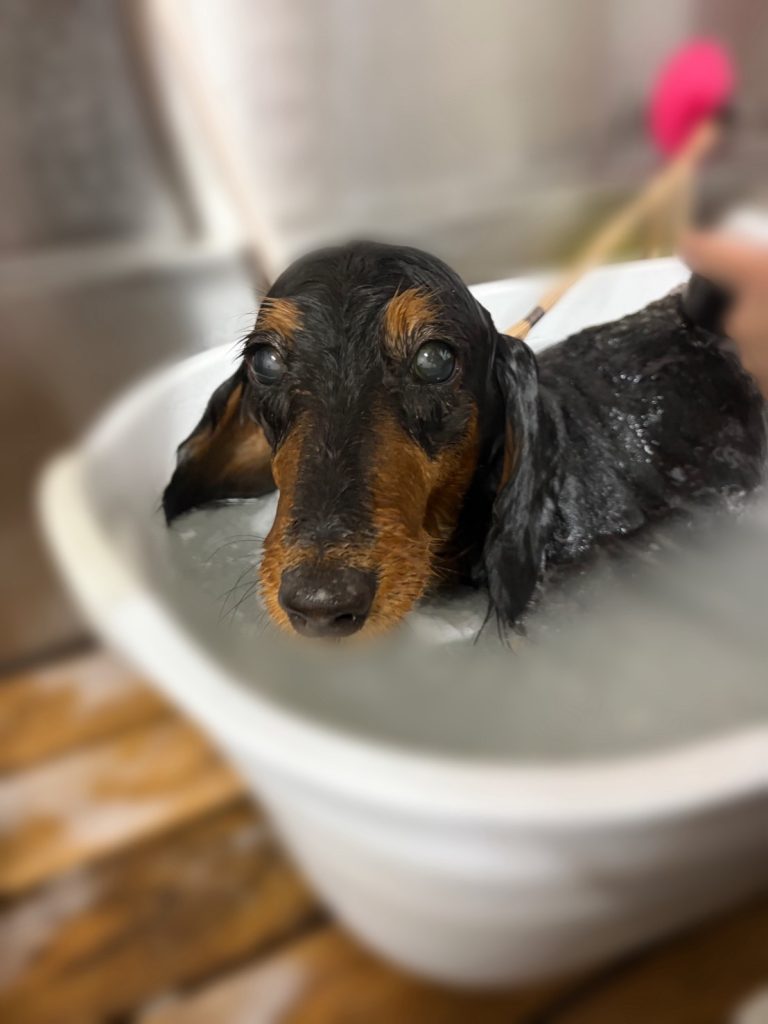 今回のオーダーは、全身2mm、お耳の形、おひげカット、歯磨き、高濃度炭酸泉スパコースでした。