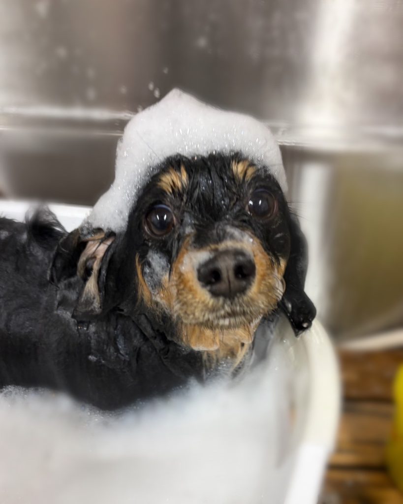 モモちゃん。マイクロバブル温浴と~っても気持ちよさそうでした~。お仕上がりもふわっふわっで~す。🎵🎵🎵