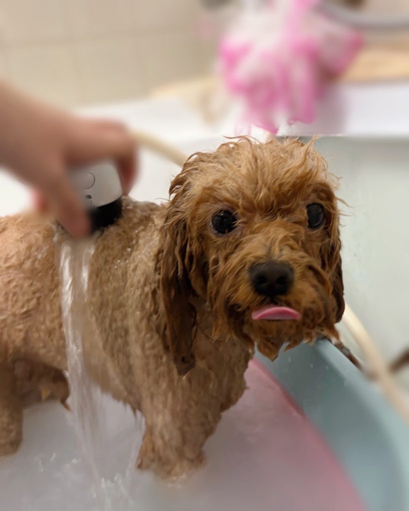まんじゅうくん。炭酸泉温浴と~っても気持ちよさそうでした~。お仕上がりもふわっふわっで~す。😊👍