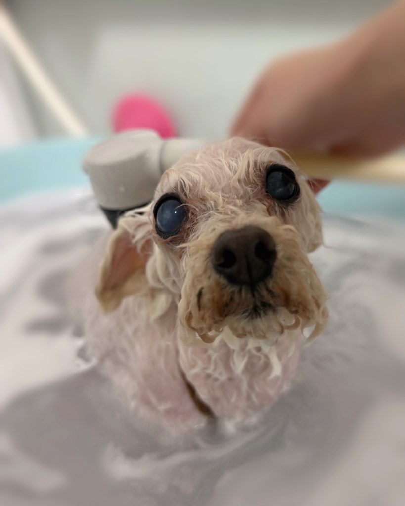さ~っ。ミルキーちゃん。シャンプーマシーン使ってマイクロバブルコースやって行こ~ね~。🛀🛀🛀