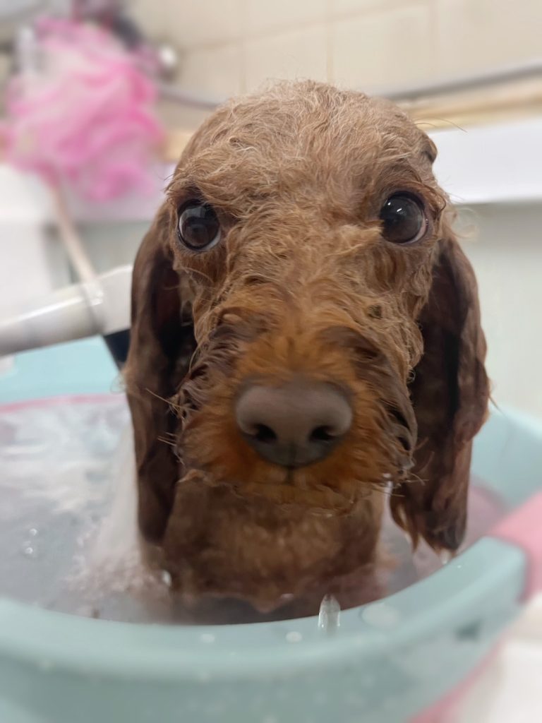 心晴ちゃん。炭酸泉温浴と~っても気持ちよさそうでした~。お仕上がりもふわっふわっで~す。😊👍