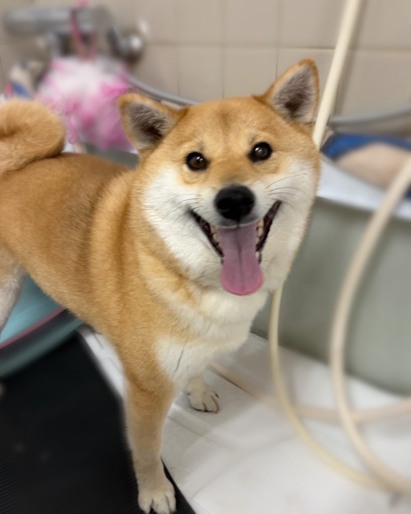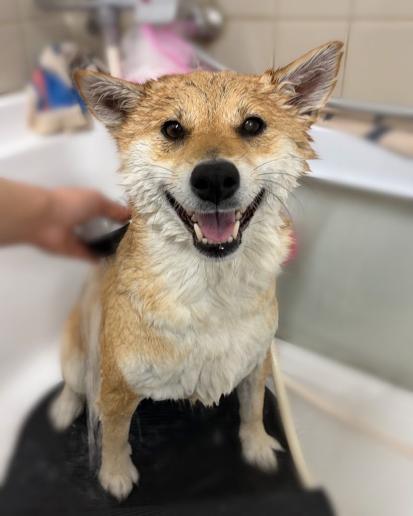 なつちゃん。高濃度炭酸かけながしと~っても気持ちよさそうでした~。お仕上がりもふわっふわっで~す。🎵🎵🎵