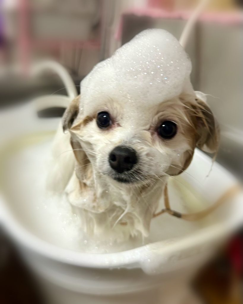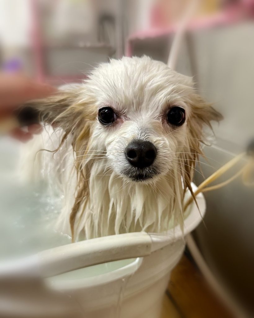らいむくん。炭酸泉温浴と~っても気持ちよさそうでした~。お仕上がりもふわっふわっで~す。🎵🎵🎵