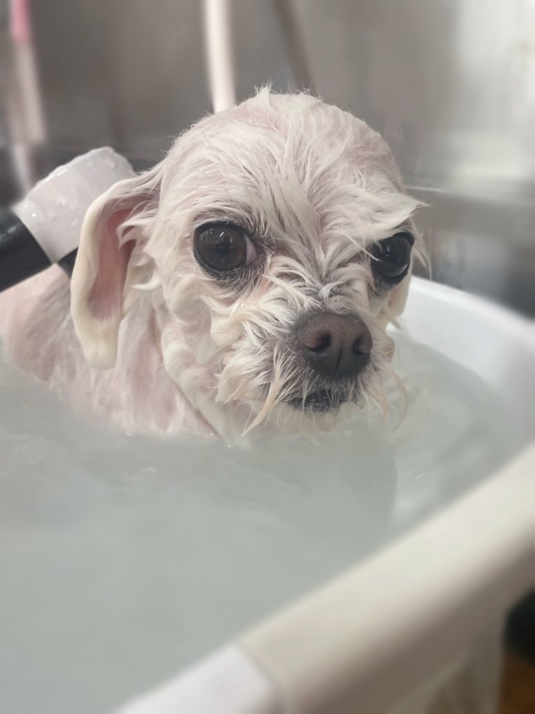 ももちゃん。マイクロバブル温浴と~っても気持ちよさそうでした~。お仕上がりもふわっふわっで~す。😝😝😝
