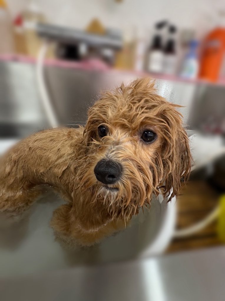 ジュアンくん。炭酸泉温浴と~っても気持ちよさそうでした~。お仕上がりもと~ってもフワフワで~す。🎵🎵🎵