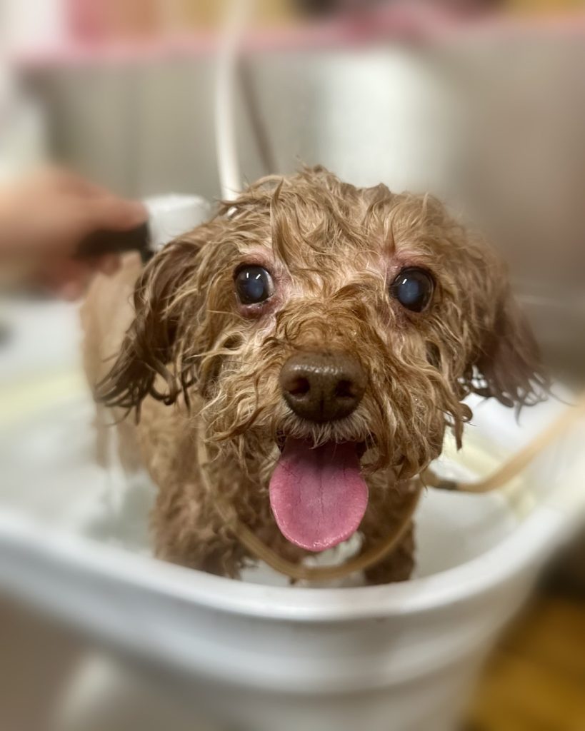 ココくん。炭酸泉温浴と~っても気持ちよさそうでした~。お仕上がりもふわっふわっで~す。😆👍