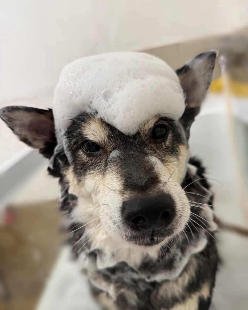 たろうくん。マイクロバブルの力を借りて抜毛さんと皮脂汚れさんたくさ~ん取れました~。🎵🎵🎵