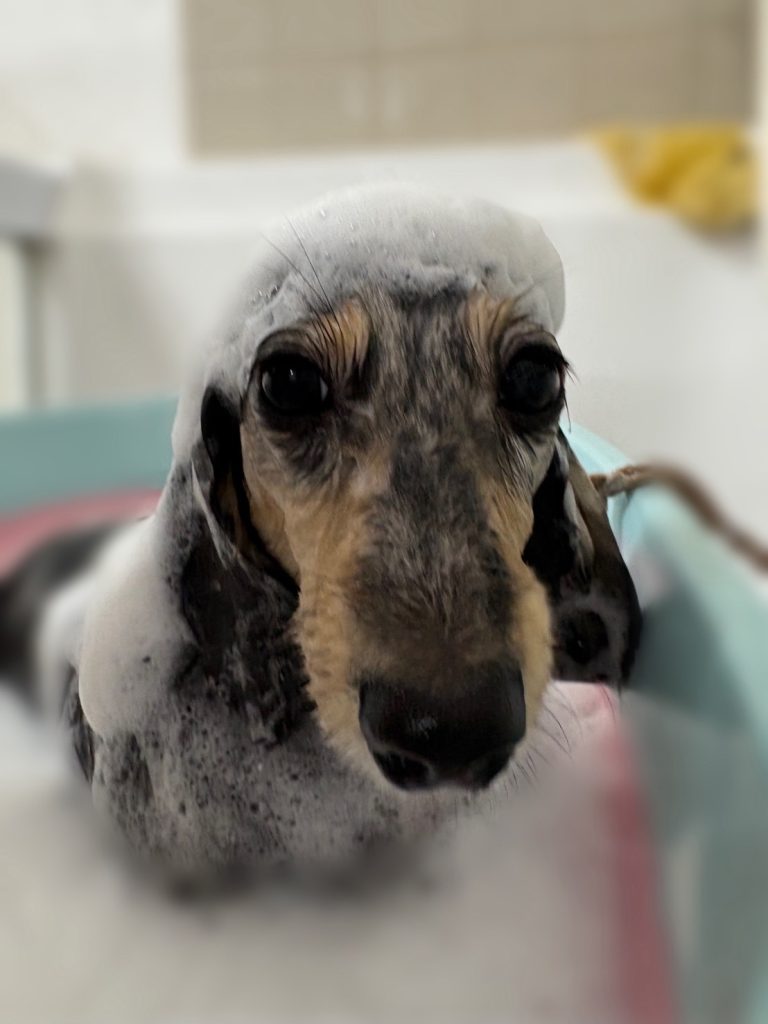 ジュエルちゃん。温浴&マッサージ効果と~っても気持ちよさそうでした~。お仕上がりもふわっふわっです。😝😝😝