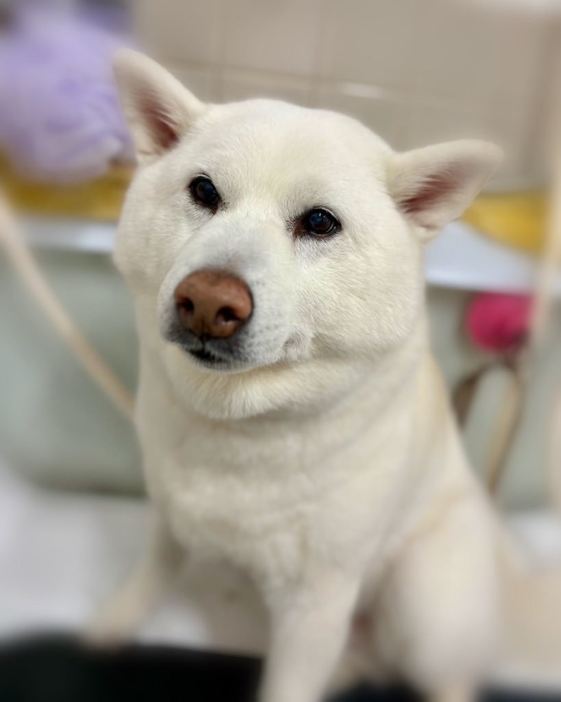 りゅうくん。たくさ~んこすらずに抜け毛さん取れたよ~。お仕上がりもと~ってもフワフワになりました~。🎵🎵🎵