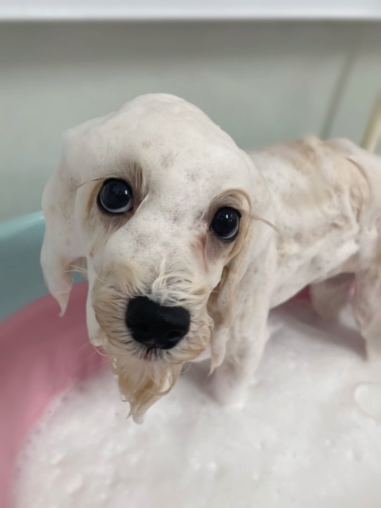 トリミングが初めてとは思えないほどおりこうさんに進めて行くことができました~。👏👏👏