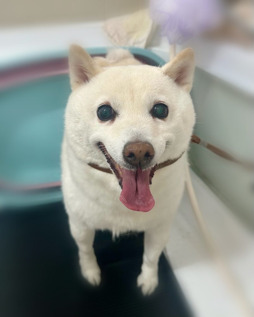 ゆばちゃん。マイクロバブル温浴と~っても気持ちよさそうでした~。お仕上がりもふわっふわっで~す。🎵🎵🎵