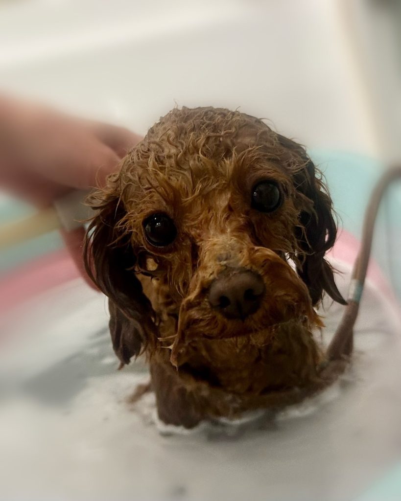 イクラくん。炭酸温浴と~っても気持ちよさそうでした~。お仕上がりもふわっふわっで~す。😆👍