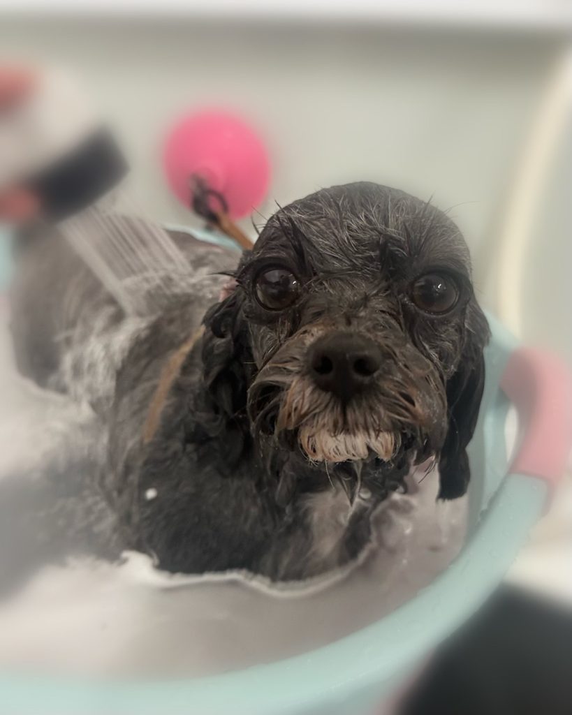 まるちゃん。炭酸泉温浴と~っても気持ちよさそうでした~。お仕上がりもふわっふわっで~す。😝👍