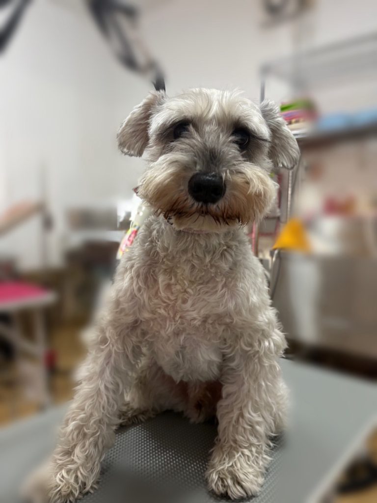 今回のオーダーは、お体3.2mm、四肢ストレート、お顔シュナウザーカット、マズル小さめで楕円形、眉毛短めでまあるく、まつげ2cm残しでした。