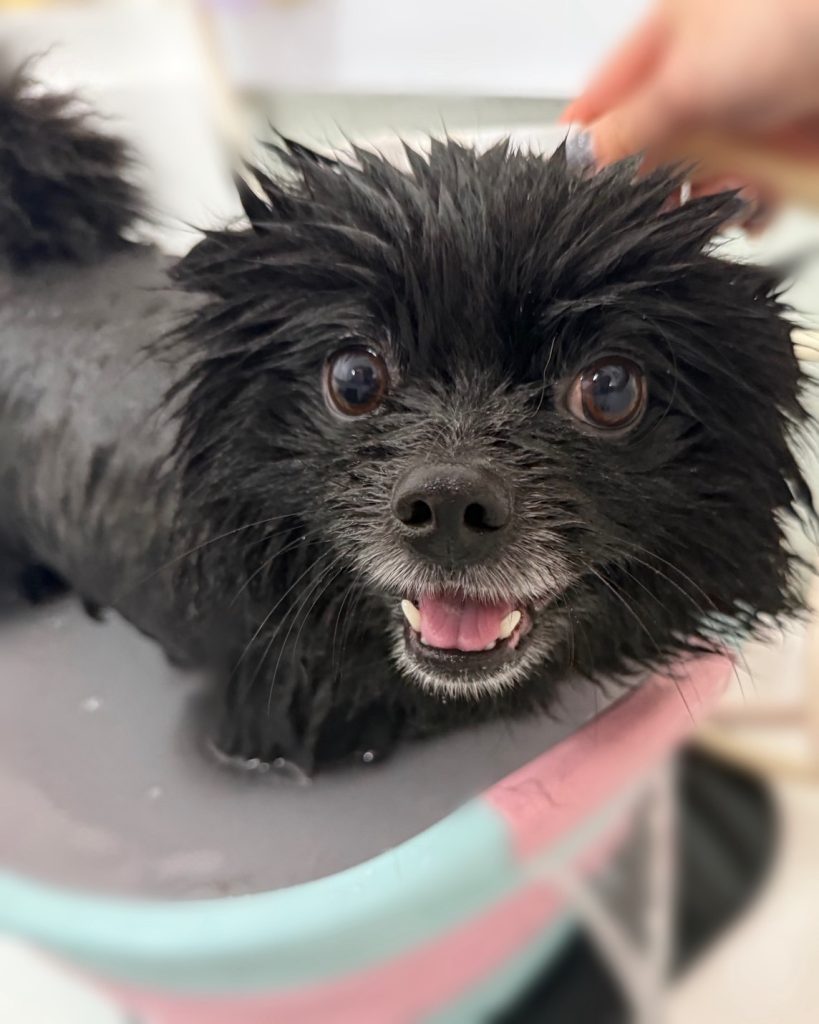 つきくん。マイクロバブル温浴と~っても気持ちよさそうでした~。お仕上がりもと~ってもふわっふわっで~す。🎵🎵🎵