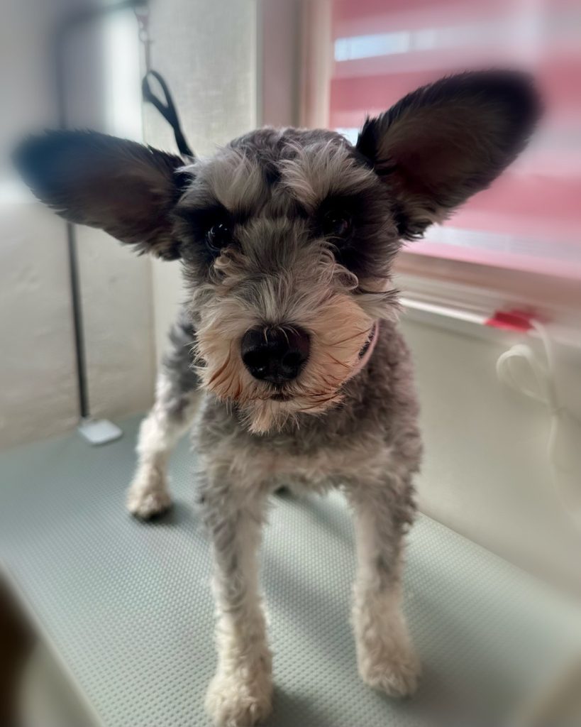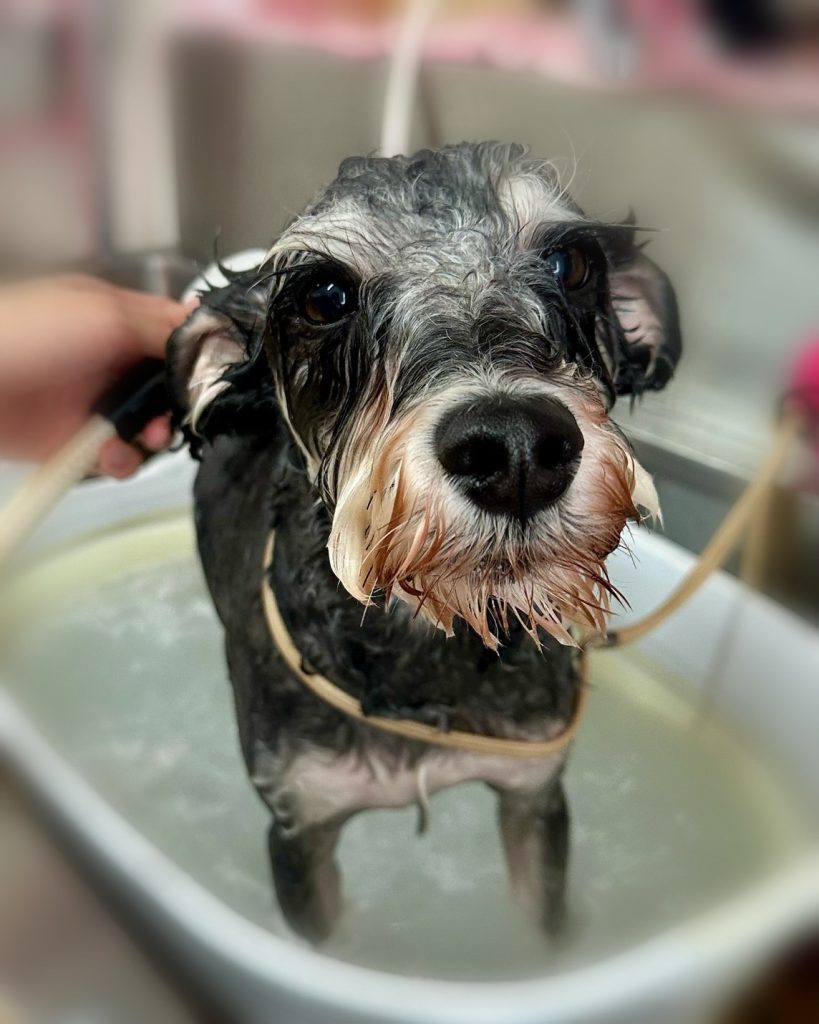 今回のオーダーは、全身9.6mm、お顔シュナウザーカット、眉毛まあるく、まつげ残し、お尻2mm、高濃度炭酸泉スパコースでした。