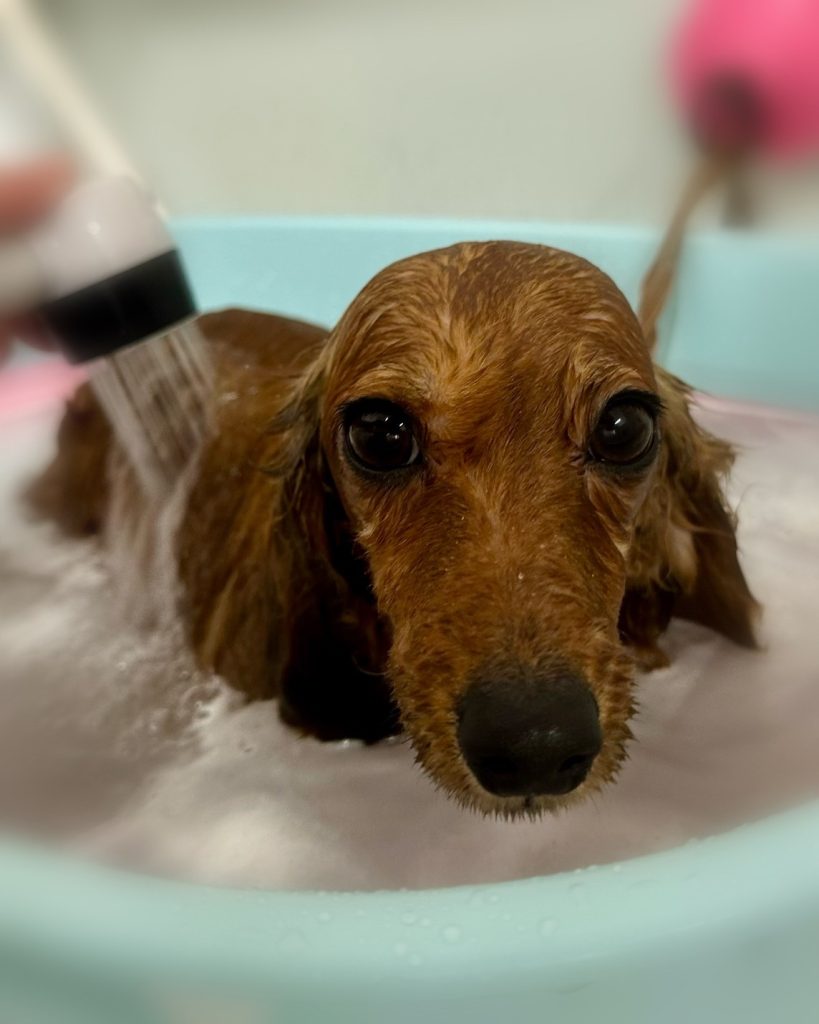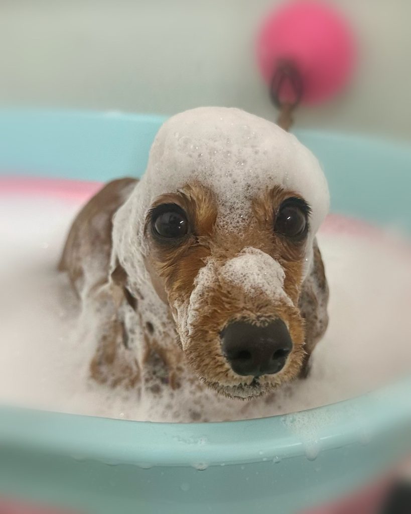 SOLくん。炭酸泉温浴と~っても気持ちよさそうでした~。お仕上がりはふわっふわっで~す。🎵🎵🎵