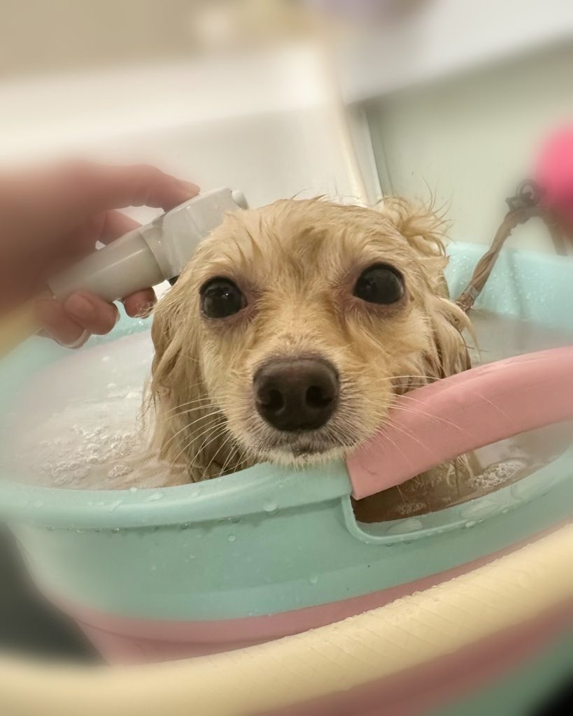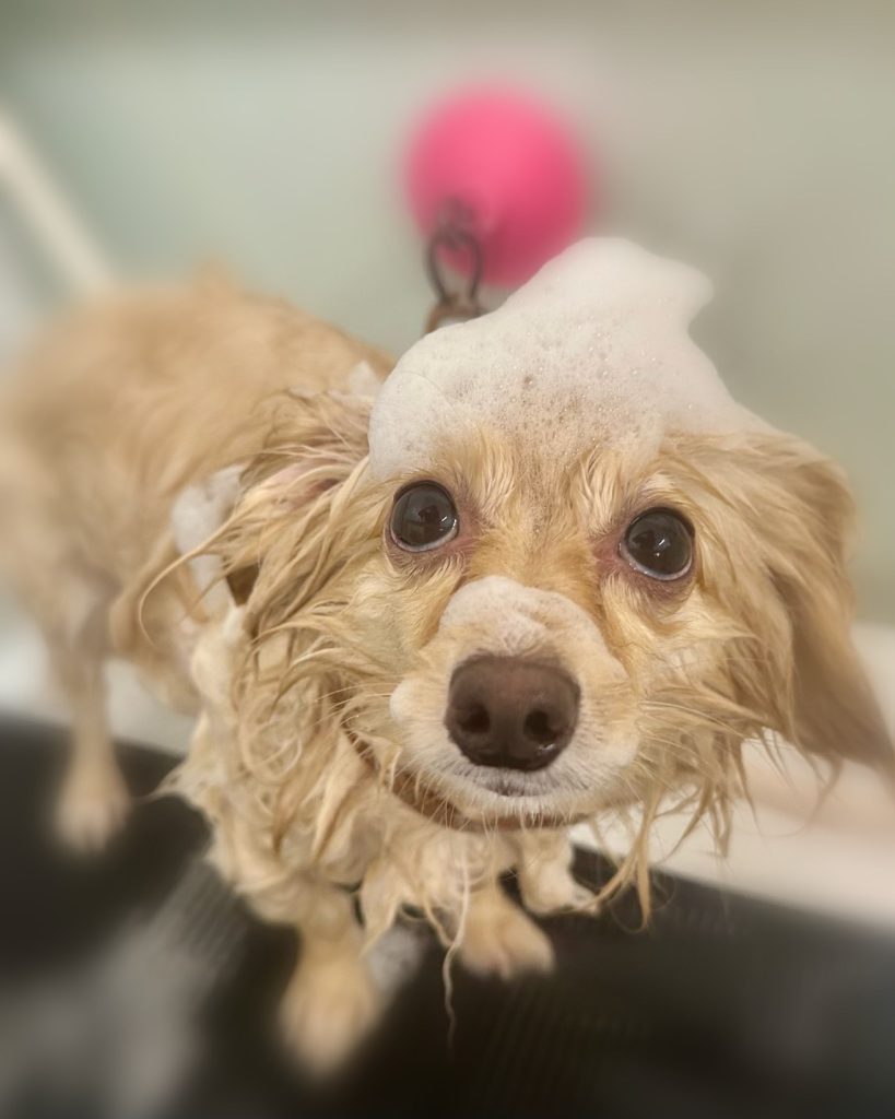 凪くん。炭酸泉温浴と~っても気持ちよさそうでした~。お仕上がりもふわっふわっで~す。😝😝😝