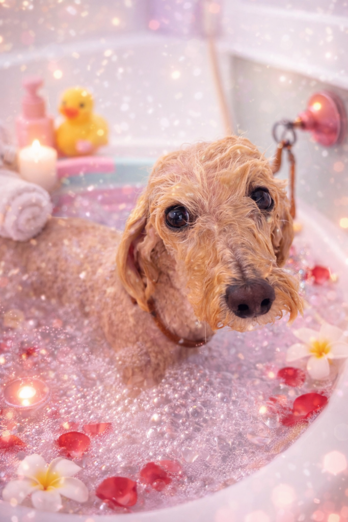 こむぎちゃん。炭酸泉温浴と~っても気持ちよさそうでした~。お仕上がりもふわっふわっで~す。😊👍