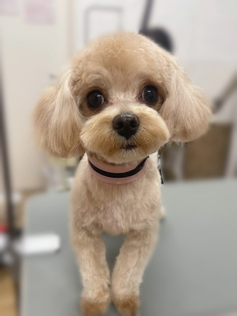 今回のオーダーは、お体6.4mm、四肢10mm、お顔お写真参照、お耳顎ラインですそまあるく、しっぽ半分カット、高濃度炭酸泉スパコースでした。