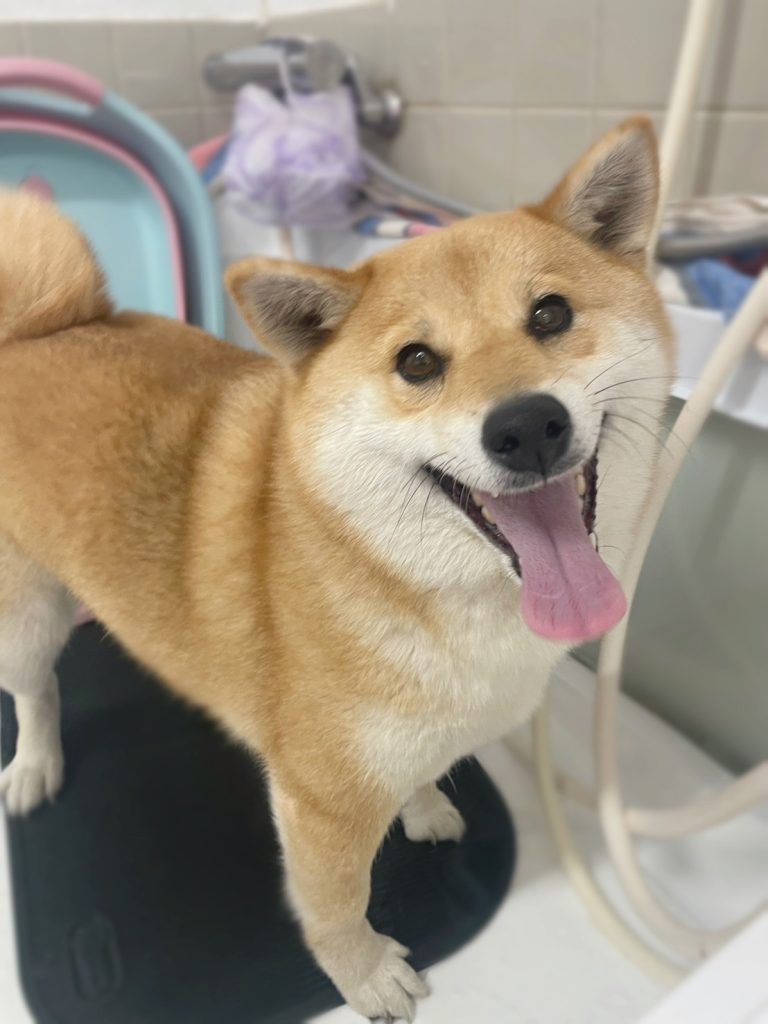 なつちゃん。高濃度炭酸かけながしと~っても気持ちよさそうでした~。お仕上がりもふわっふわっで~す。🎵🎵🎵