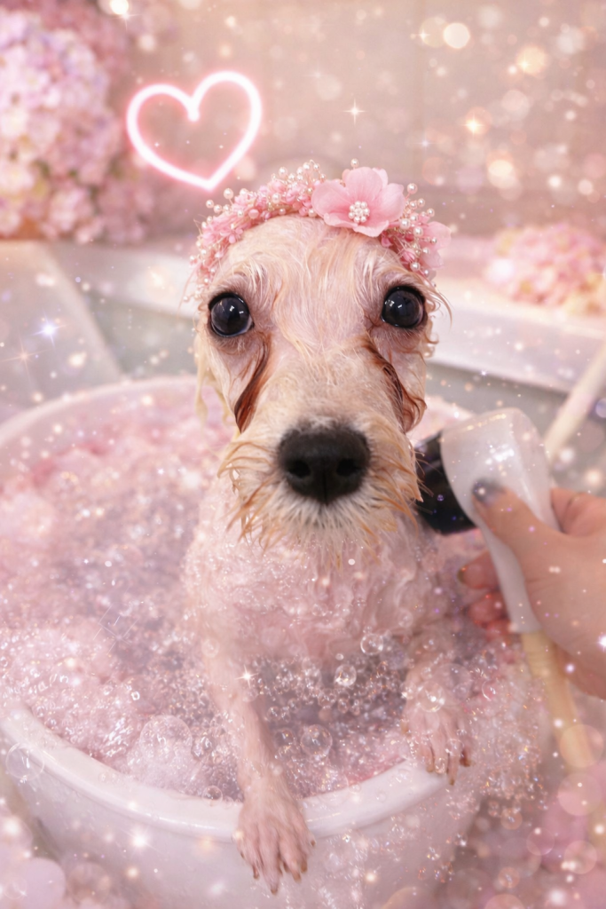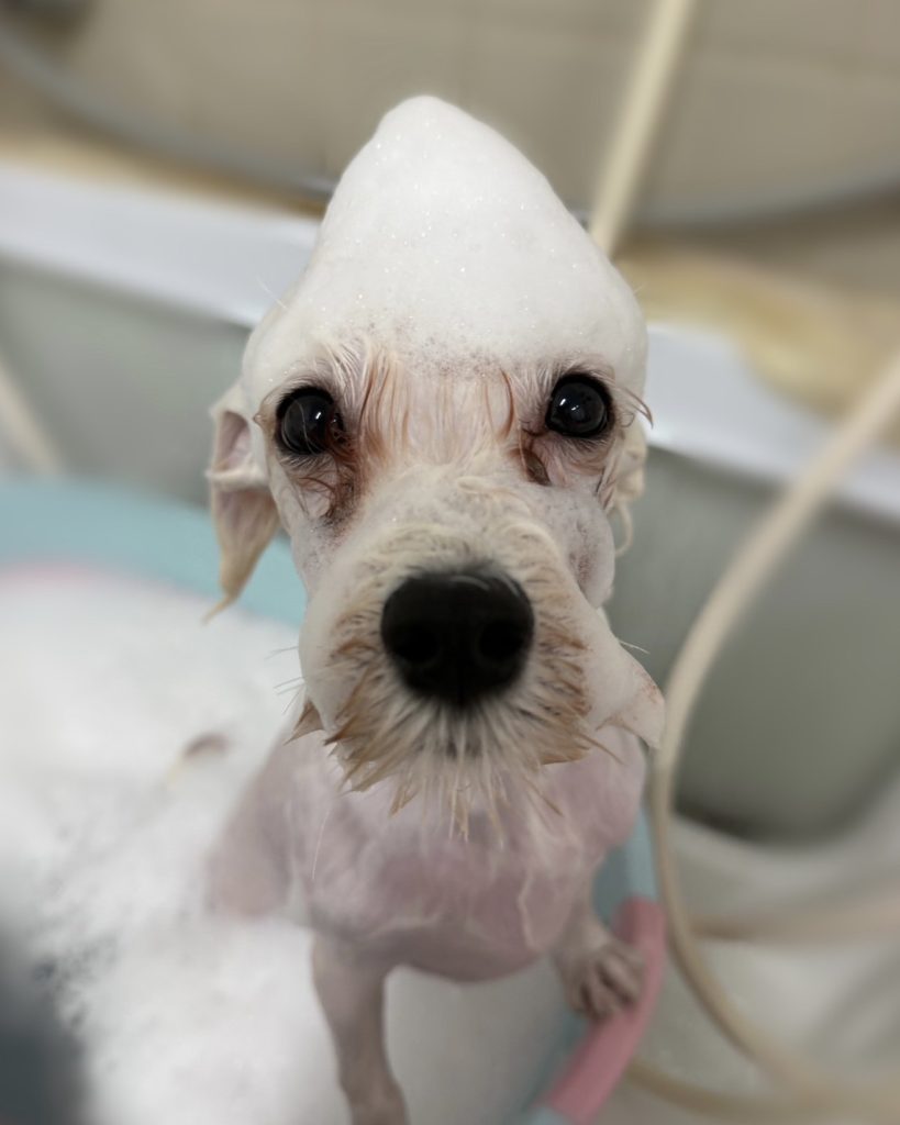 そして毛玉を作りにくくしてくれる高濃度炭酸泉スパコースをお試しいただき毛穴の奥から汚れも取れフワッフワッなお仕上がりになりました~。🛀🛀
