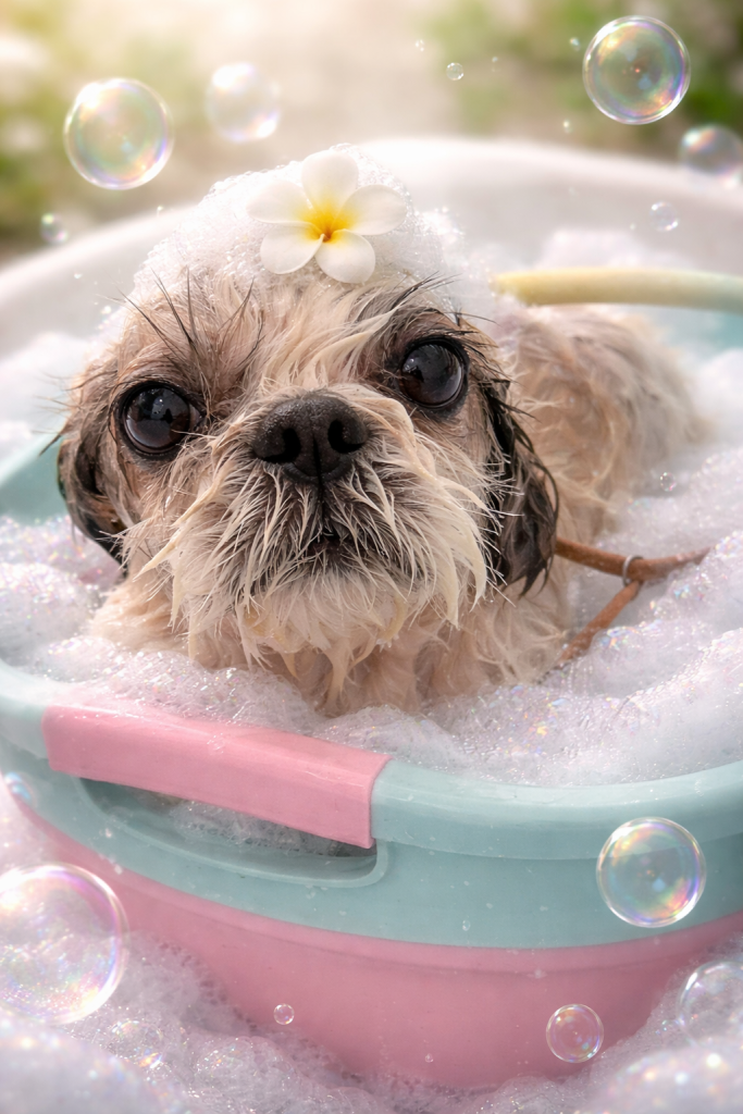 今回のオーダーは、全身6.4mm、お顔スッキリまあるく、お耳ふちでまあるく、しっぽ短く、マイクロバブルコースでした。