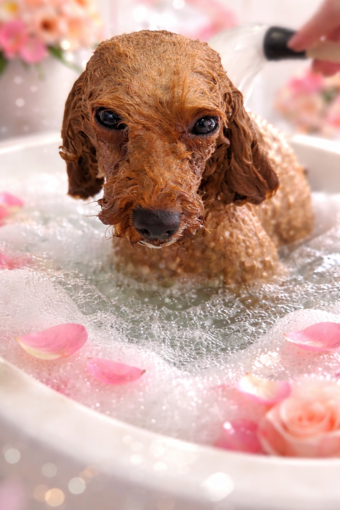 塁くん。炭酸泉温浴と~っても気持ちよさそうでした~。お仕上がりもふわっふわっで~す。😝😝😝